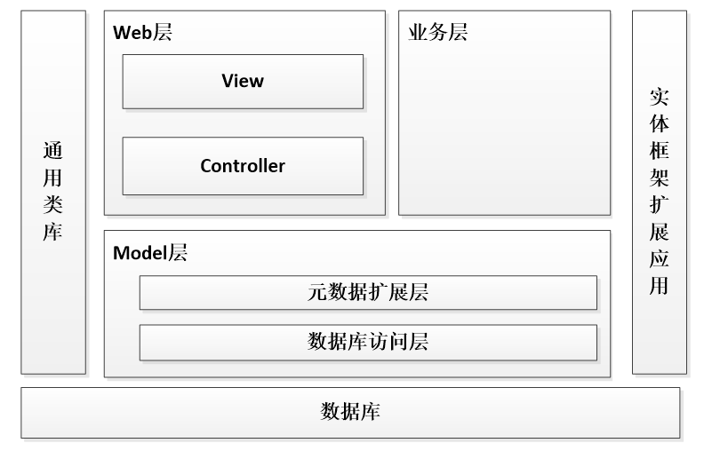 本高校失物招领系统的架构设计主要分为可以3层,主要有Web层,业务层,Model层。其中web层还包括View层和Controller层,Model层包括元数据扩展层和数据访问层。
