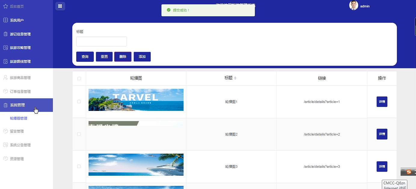 系统管理:管理首页轮播图内容,包括图片上传、排序调整和链接设置。