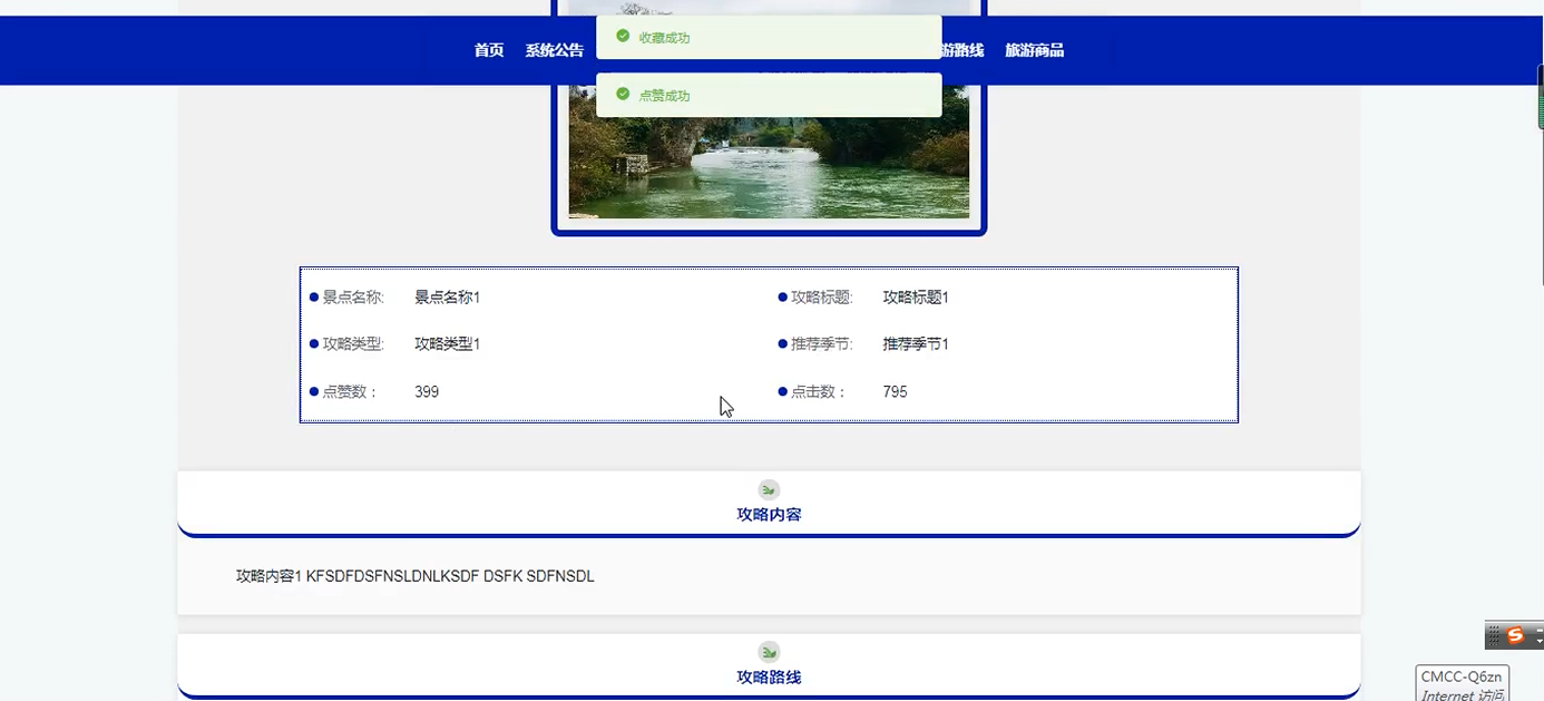 旅游攻略查看功能测试: