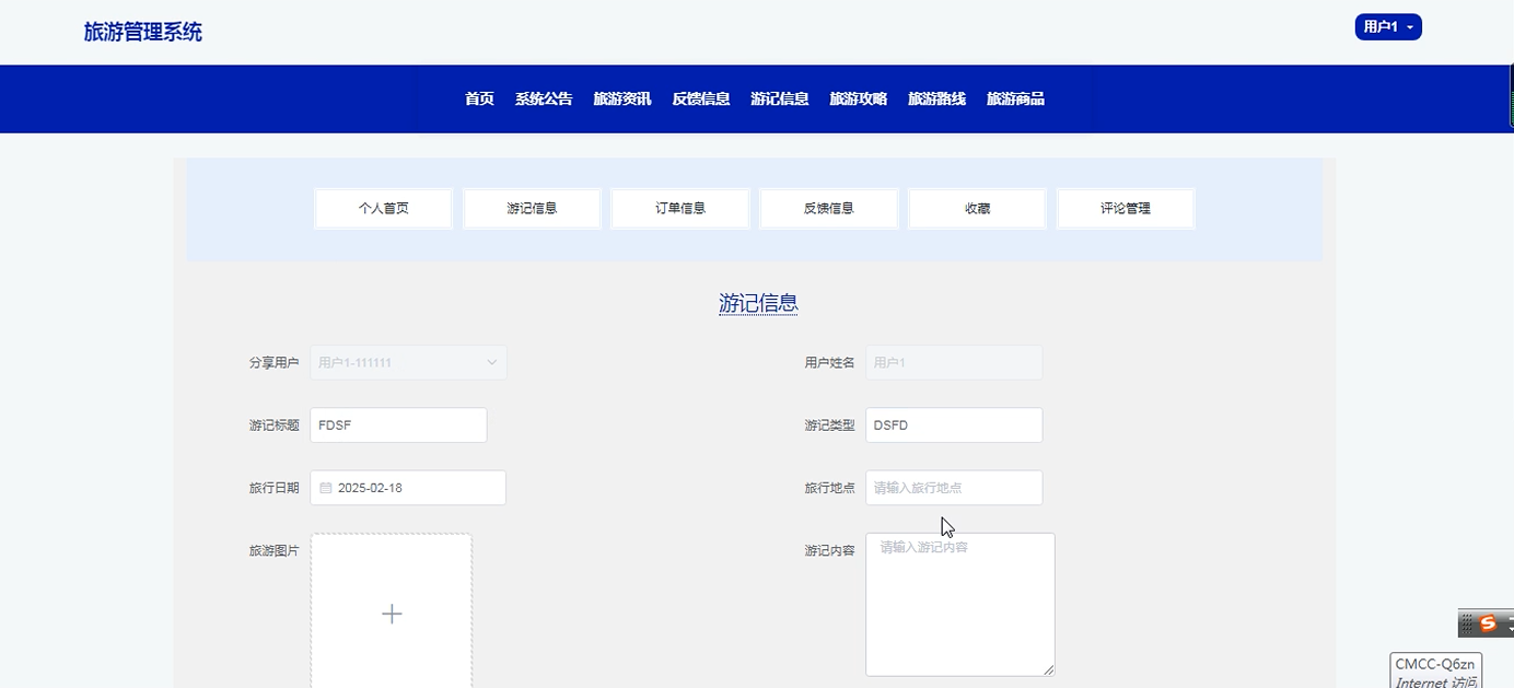 添加游记信息界面测试: