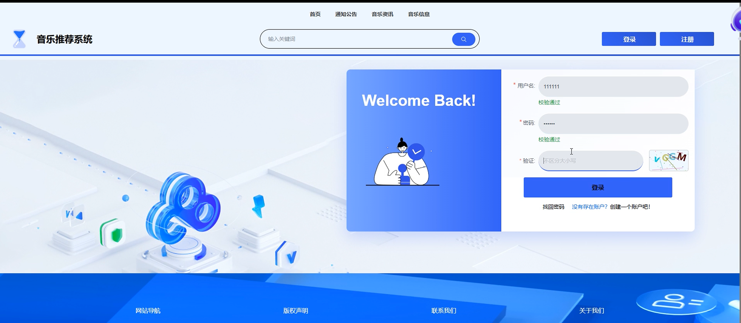 通过系统的功能测试,包括登录注册测试、音乐搜索测试、播放测试、收藏与评论管理测试等,结果表明系统运行稳定,功能完整,交互体验良好,能够满足用户对于音乐搜索、浏览、推荐、管理等需求。此外,在兼容性测试中,该系统在不同设备、操作系统及浏览器环境下均能保持较好的适配性;在性能测试中,系统在一定负载和并发请求情况下仍能保持流畅的响应速度,保证用户体验。