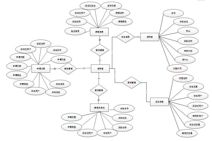图3.2大学生请假管理系统总E-R关系图