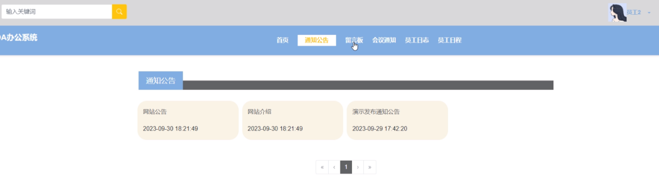 The system encompasses core modules such as public management, user management, department information, job positions, employee attendance, leadership attendance, employee communications, leadership communications, meeting notifications, employee logs, leadership logs, employee schedules, leadership schedules, approval matters, and approval requests, comprehensively meeting the daily office needs of enterprises. By employing an object-oriented development approach, the system ensures flexibility and maintainability.