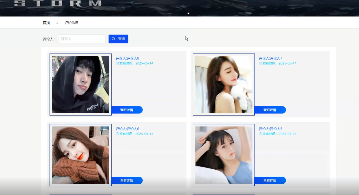 管理员可以在评论信息管理页面对用户评论进行管理,包括审核评论、删除不当评论等操作。管理员还可以对评论进行筛选和搜索。评论信息管理界面如图5-7所示。