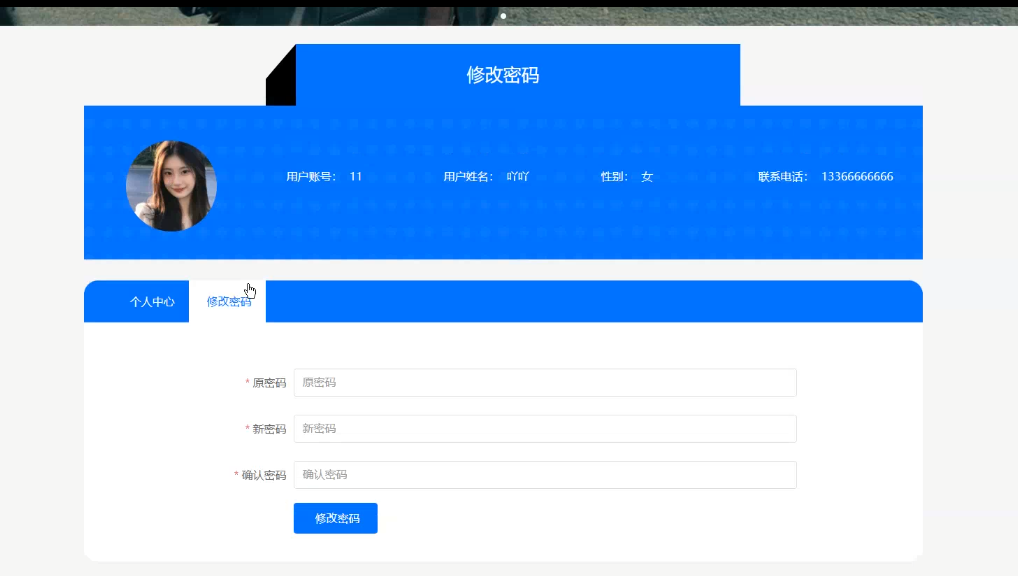 用户可以在个人信息管理页面修改个人资料,包括用户名、密码、联系方式等。用户还可以查看自己的观影历史和评论记录。个人信息管理界面如图5-4所示。