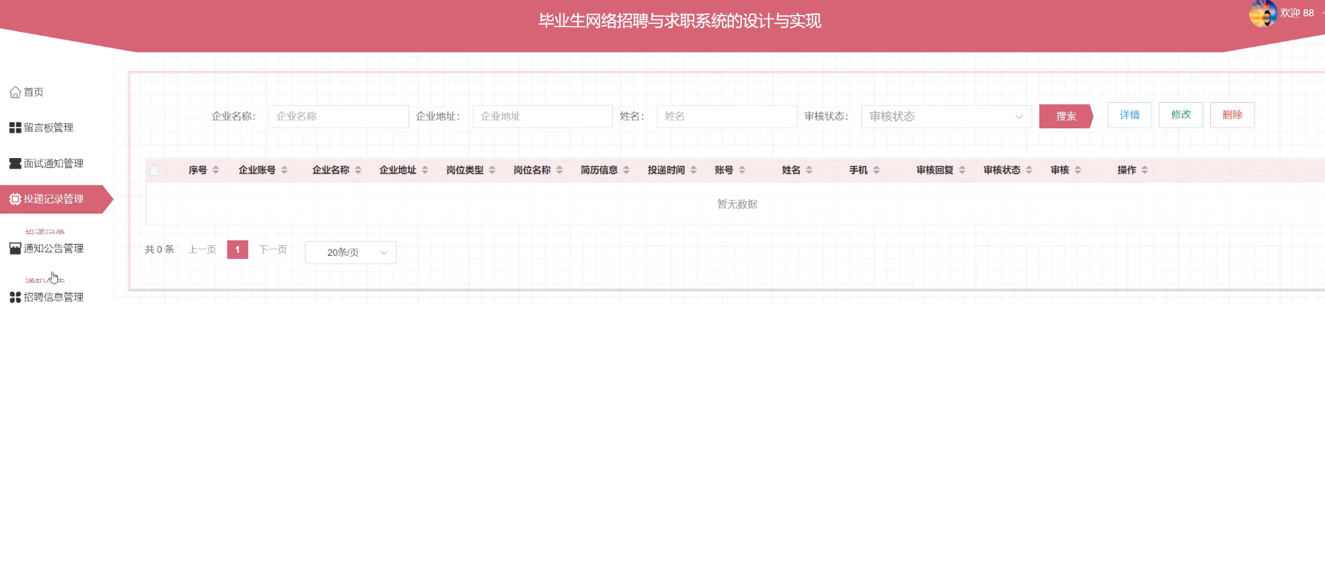 企业可发布面试通知管理、投递记录管理、通知公告管理、招聘信息管理,回复留言等、并管理公司相关内容。