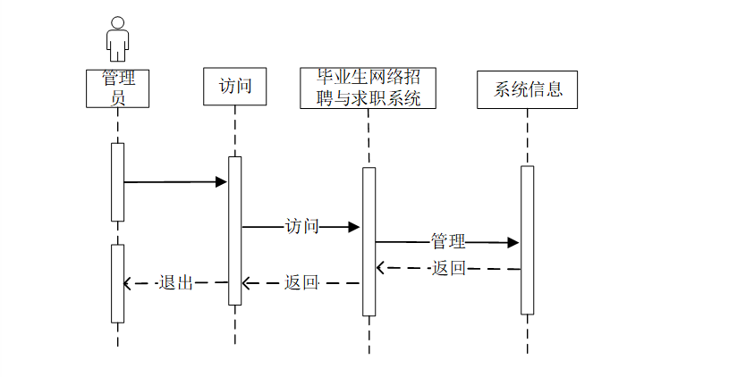 管理员通过访问系统发起请求,系统接收访问后转向系统信息模块进行管理操作。管理完成后,系统返回管理结果至系统,最终反馈给管理员,管理员可选择退出。管理员管理系统信息时序图如图4-6所示。