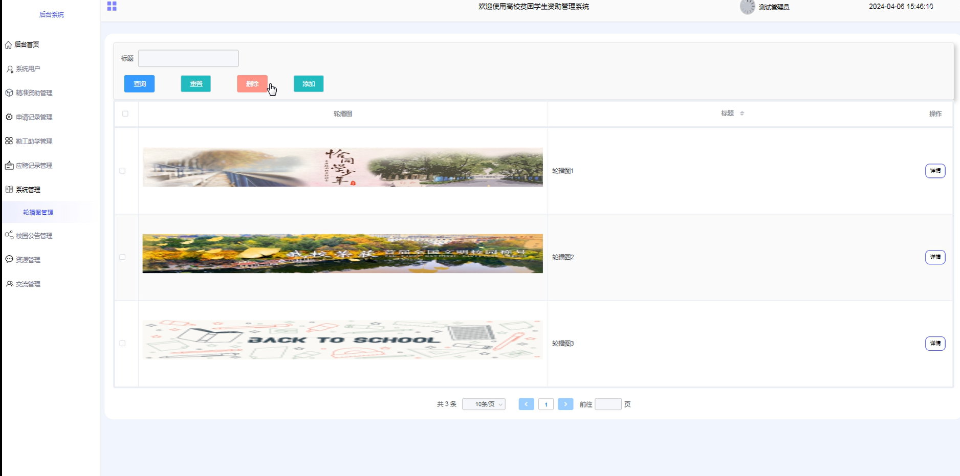 - 系统管理:这个功能模块是对轮播图发布、查询、删除等管理。