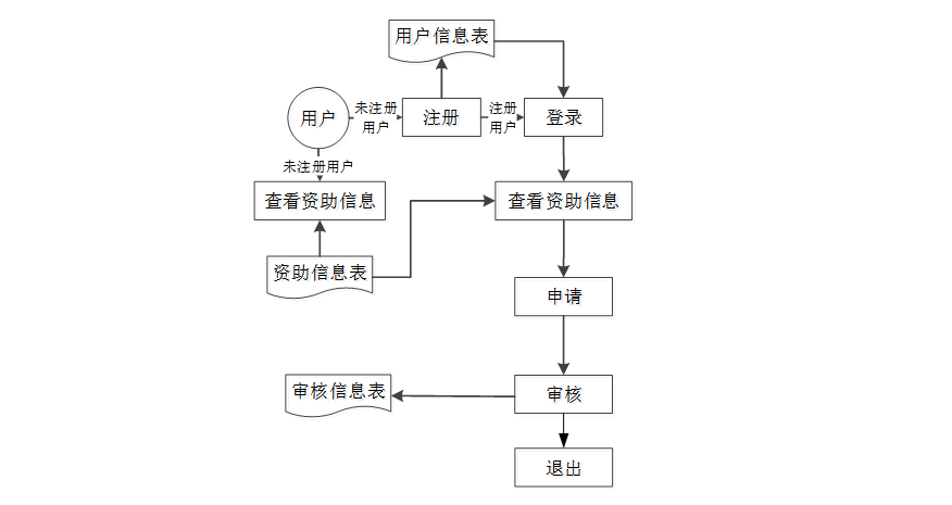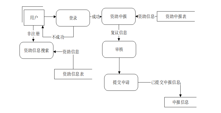 开发高校贫困学生资助管理系统最主要的一个目的就是实现用户对资助金的申报,图2-4就是系统的数据流图。