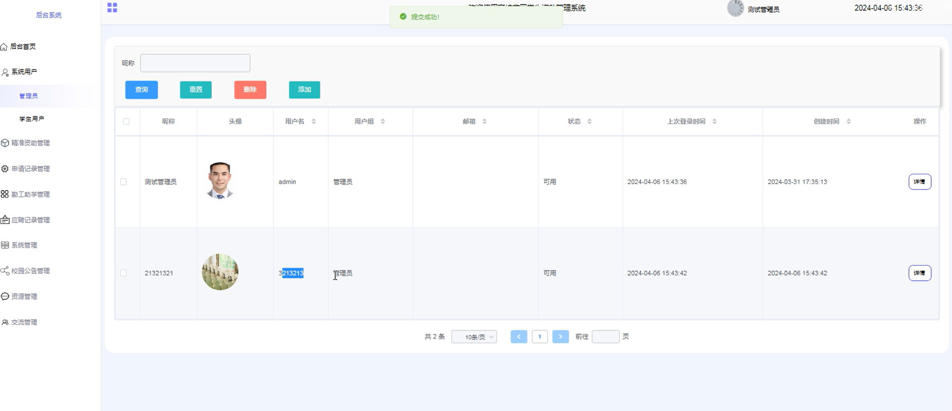 - 系统用户:该功能模块用于管理系统的用户,包括学生、管理员等各类用户的注册、登录、修改密码、权限设置等。