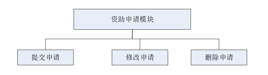 高校贫困学生资助管理系统最重要的一个功能就是资助申请,其模块功能结构,具体的结构图如下: