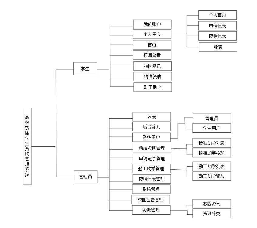 高校贫困学生资助管理系统我划分为了学生用户模块,管理员模块这两大部分。