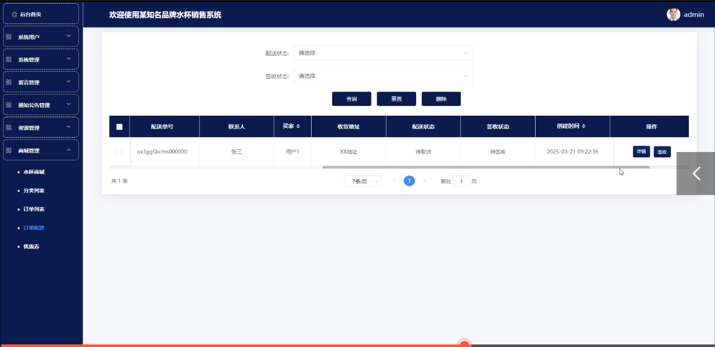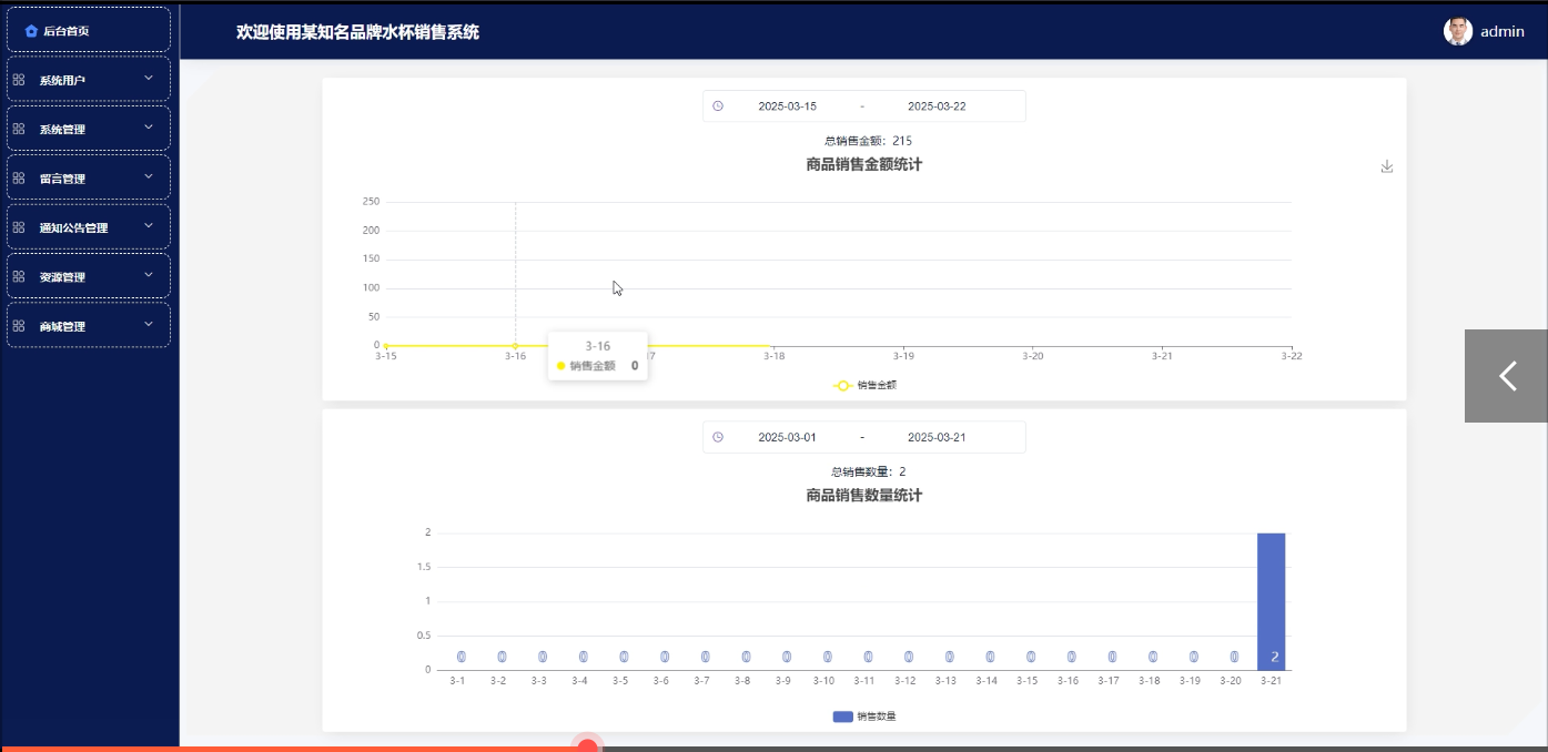 In summary, a well-known brand's water cup sales system built on Spring Boot has the advantages of rich functionality, convenient operation, safety and reliability, providing a high-quality sales system for water cup buyers. In the future, we will continue to optimize platform functions, enhance user experience, and make greater contributions to the prosperity and development of the industry.