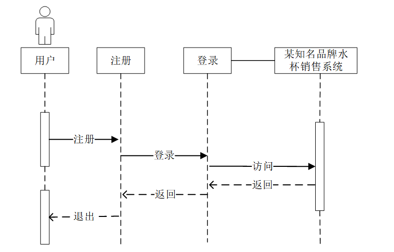 用户通过注册模块发送注册请求,系统完成注册后返回确认信息。随后,用户通过登录模块发送登录请求,系统验证用户信息后允许访问目标系统。用户完成操作后可选择退出,系统终止会话。注册时序图,如图4-3所示。