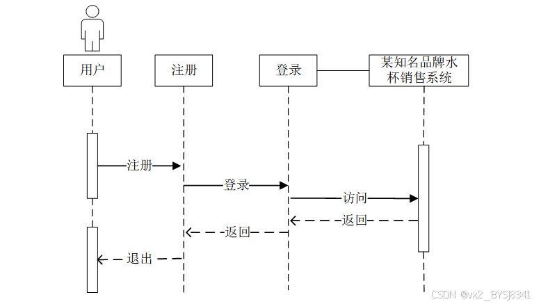 用户通过注册模块发送注册请求,系统完成注册后返回确认信息。随后,用户通过登录模块发送登录请求,系统验证用户信息后允许访问目标系统。用户完成操作后可选择退出,系统终止会话。注册时序图,如图4-3所示。