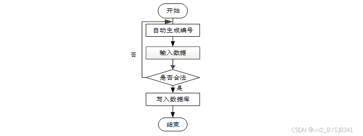 用户首先选择需要修改的记录,输入修改后的数据,系统判断输入数据是否合法。若数据不合法,提示重新输入;若数据合法,则将修改后的数据写入数据库,完成操作后流程结束。修改信息流程图如图3-7所示。