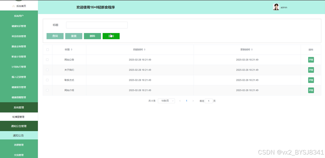 通知公告管理:管理员发布系统公告,向所有用户传达平台的重要信息。