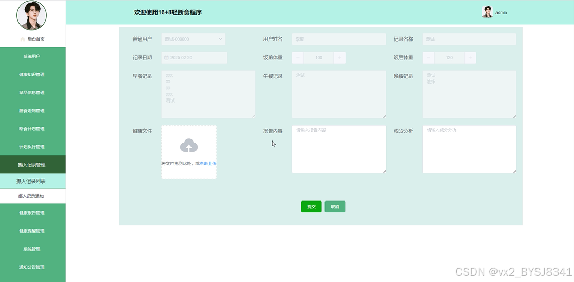 摄入记录管理:管理员可以查看所有用户的食物摄入记录,并提供指导和建议。