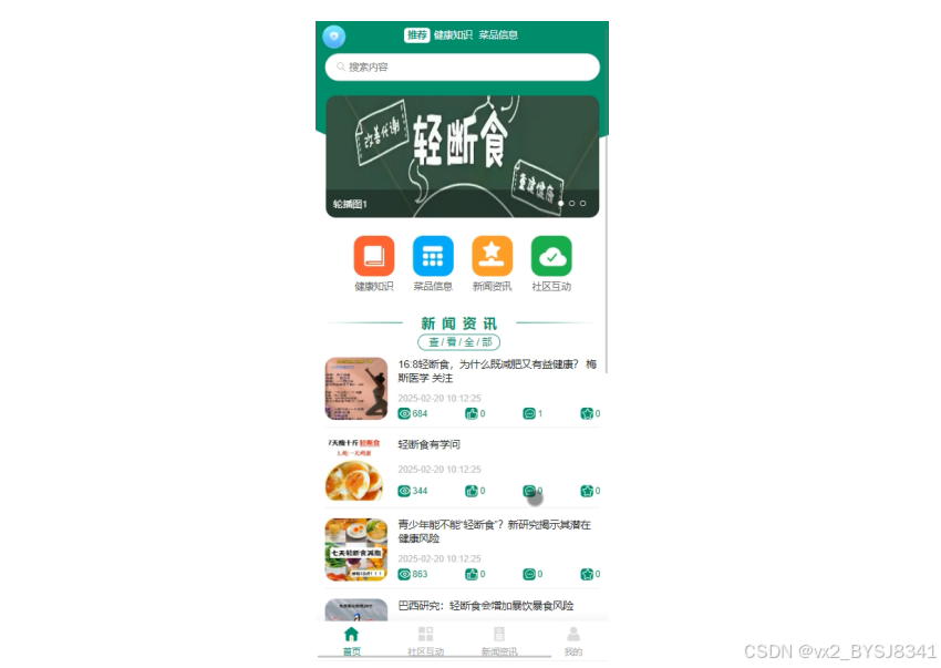 新闻资讯:提供最新的健康、饮食等相关领域的新闻和资讯,用户可以浏览、评论、分享。