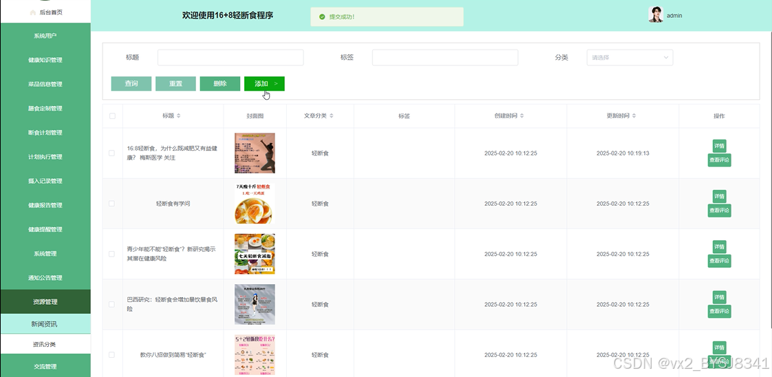 通过这些功能的实现,整个16+8轻断食程序可以高效、便捷地服务于用户与管理员,提升用户的健康管理效率。