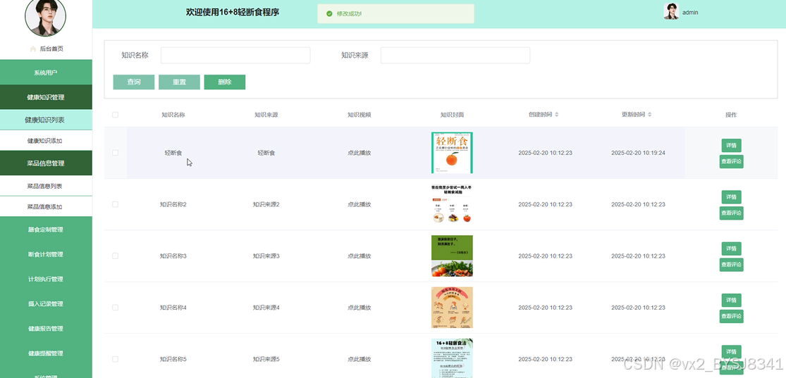 健康知识管理:管理员可以发布、修改、删除健康知识内容,管理知识库。