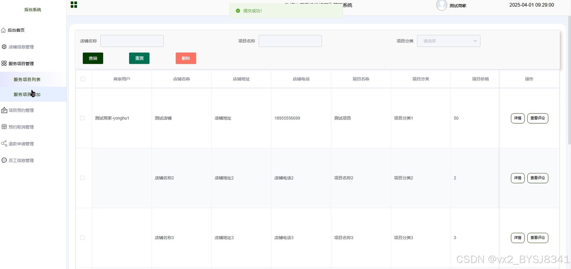 服务项目管理: 商家可以管理自己提供的服务项目,包括添加、修改、删除服务项目,设置服务价格、时长、预约要求等。