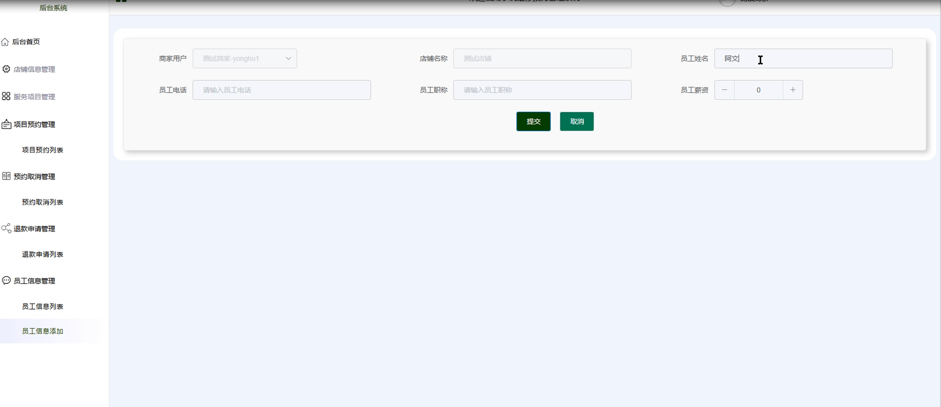 员工信息管理: 商家可添加、编辑、删除员工信息,安排员工参与服务项目。