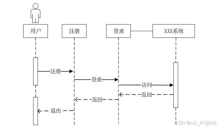 用户通过注册模块发送注册请求,系统完成注册后返回确认信息。随后,用户通过登录模块发送登录请求,系统验证用户信息后允许访问目标系统。用户完成操作后可选择退出,系统终止会话。注册时序图,如图4-3所示。