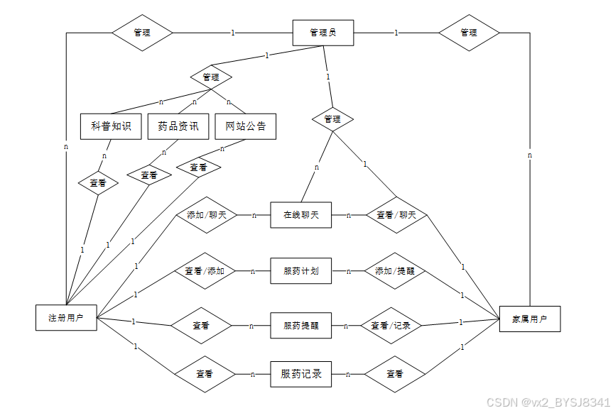系统用户:管理员负责管理所有类型的用户账户(注册用户、家属用户),包括增删改查操作,确保用户信息的准确性和完整性。