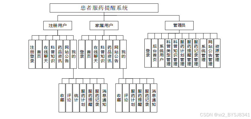 患者服药提醒系统划分为了前端模块和后端模块两大部分。