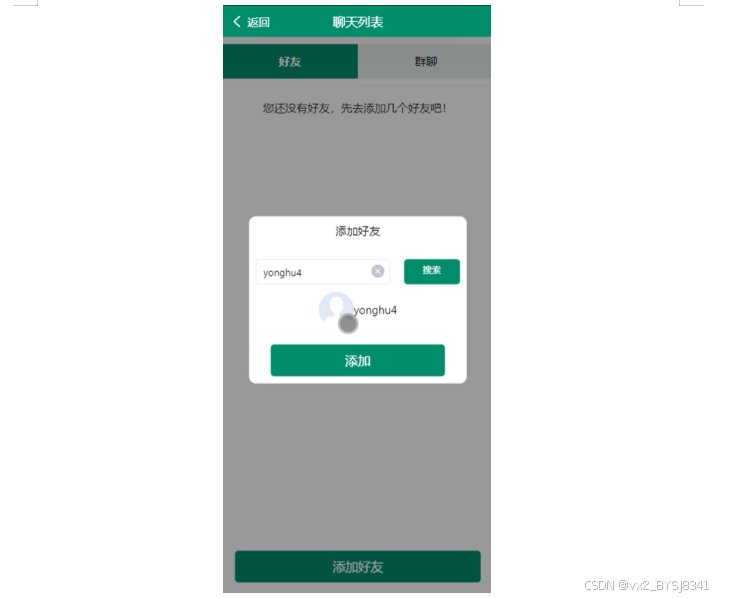 家属用户可以与注册用户以及其他家属进行即时聊天,或者创建群聊方便沟通。这一功能提高了家属与患者及医生之间的信息共享和交流效率。如下所示。