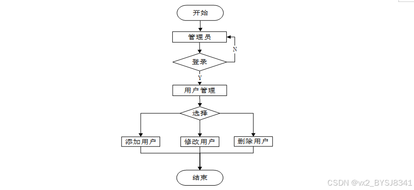 管理员负责管理平台上的所有用户,包括注册用户、家属用户及其他管理员。管理员可以对这些用户账户进行增、删、改、查操作,确保平台用户信息的准确性和及时更新。用户管理流程图如下所示。