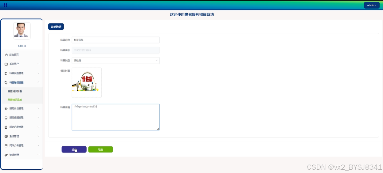 科普知识管理:管理员可以查看科普知识详情及用户评论,支持添加科普知识、查询、重置、删除操作,确保科普内容的质量和准确性。