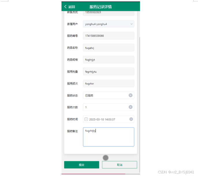 服药记录:查看详细的服药记录,支持查询、重置和搜索操作,便于跟踪用药情况。
