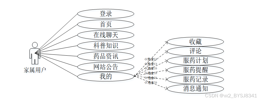 家属用户角色用例如下图所示。