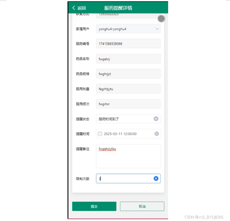 服药提醒:查看服药提醒详情,支持查询和重置操作,确保患者按时服药。