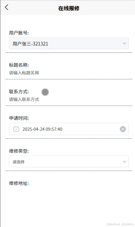 用户可以通过平台提交在线报修请求,填写详细的故障信息,并选择维修服务,享受便捷的家电修理服务。在线维修界面如图5-3所示