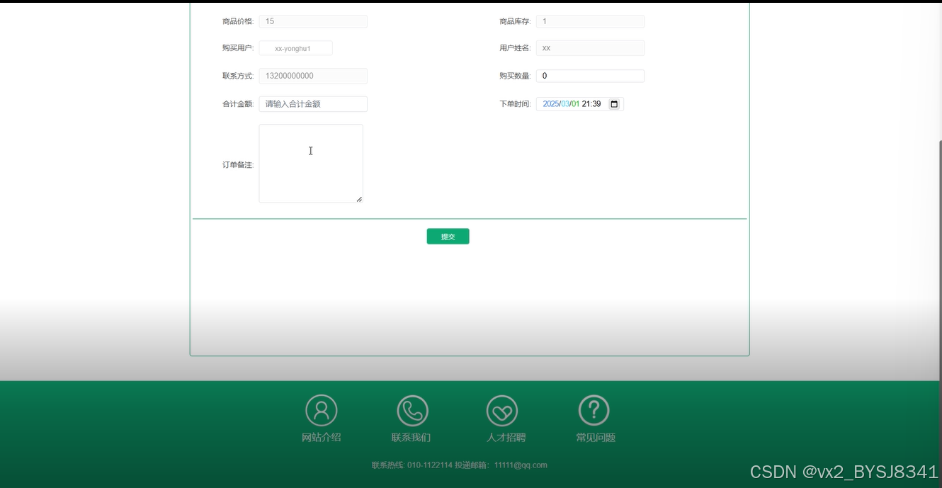 点击系统左上角的“个人中心”菜单按钮,用户可以发布求购商品信息,可以查看自己的下单信息并进行支付,可以查看自己发布的帖子和评论内容、留言回复信息以及收藏的资讯或商品信息等。发布求购商品页面如图5-8所示。下单信息页面如图5-9所示。社区广场页面如图5-10所示。