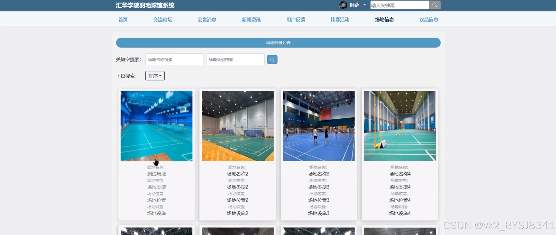 - 场地信息管理:管理员可以添加场地信息,可以对已有的场地信息进行查询、重置和删除操作。