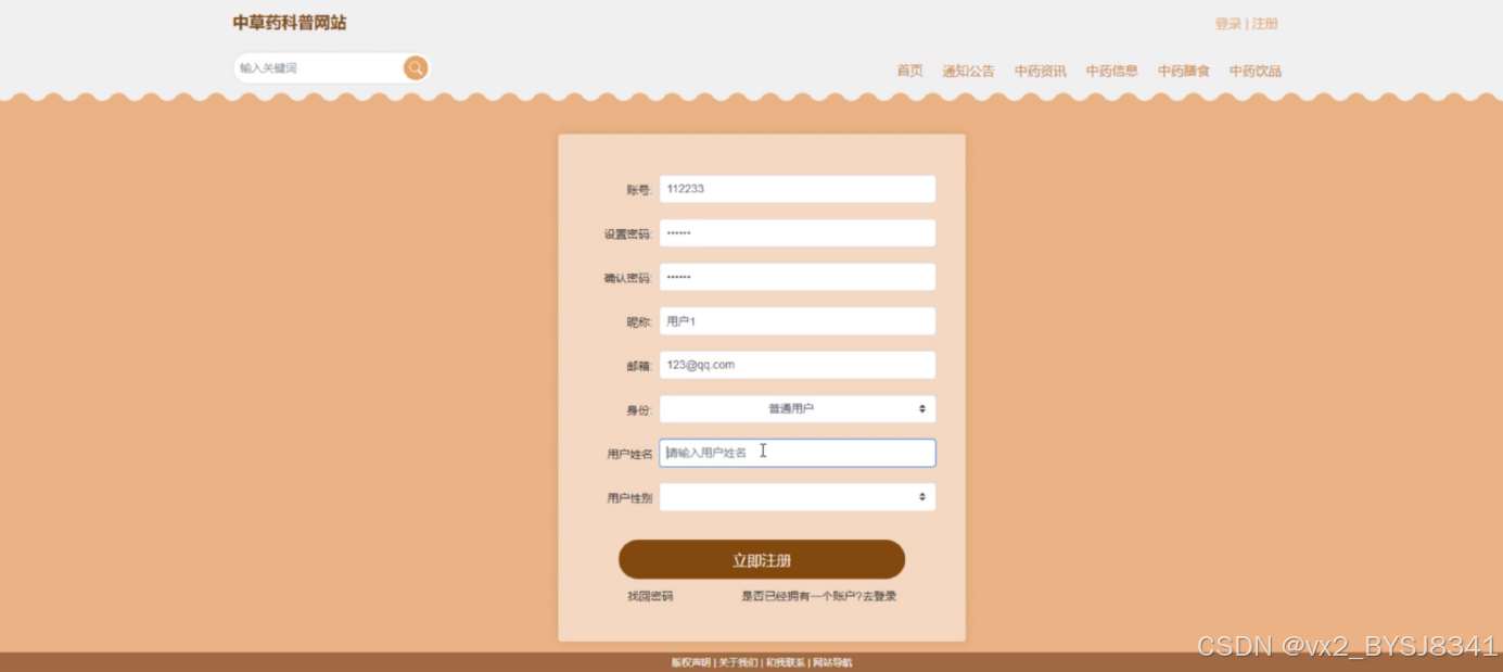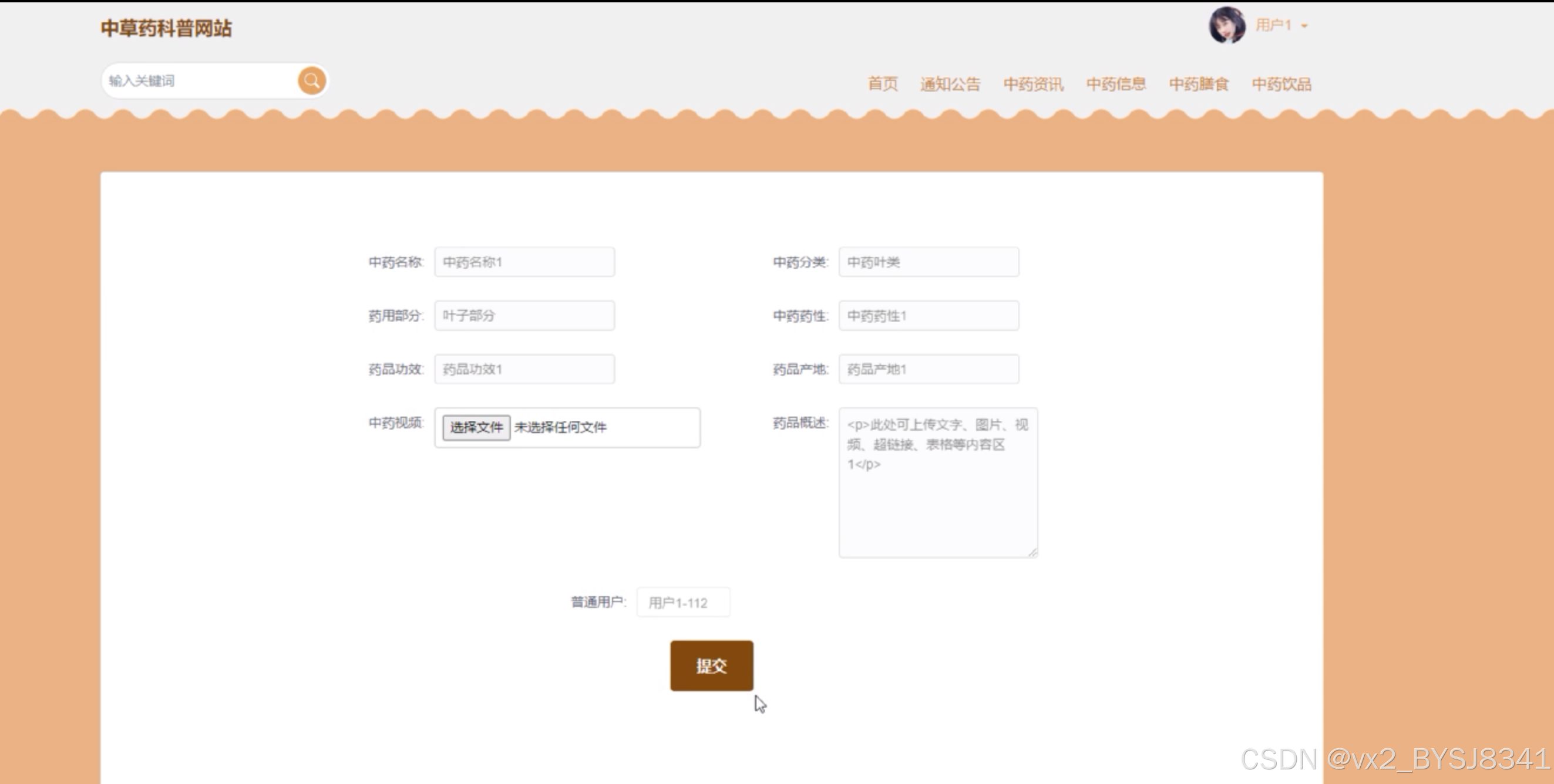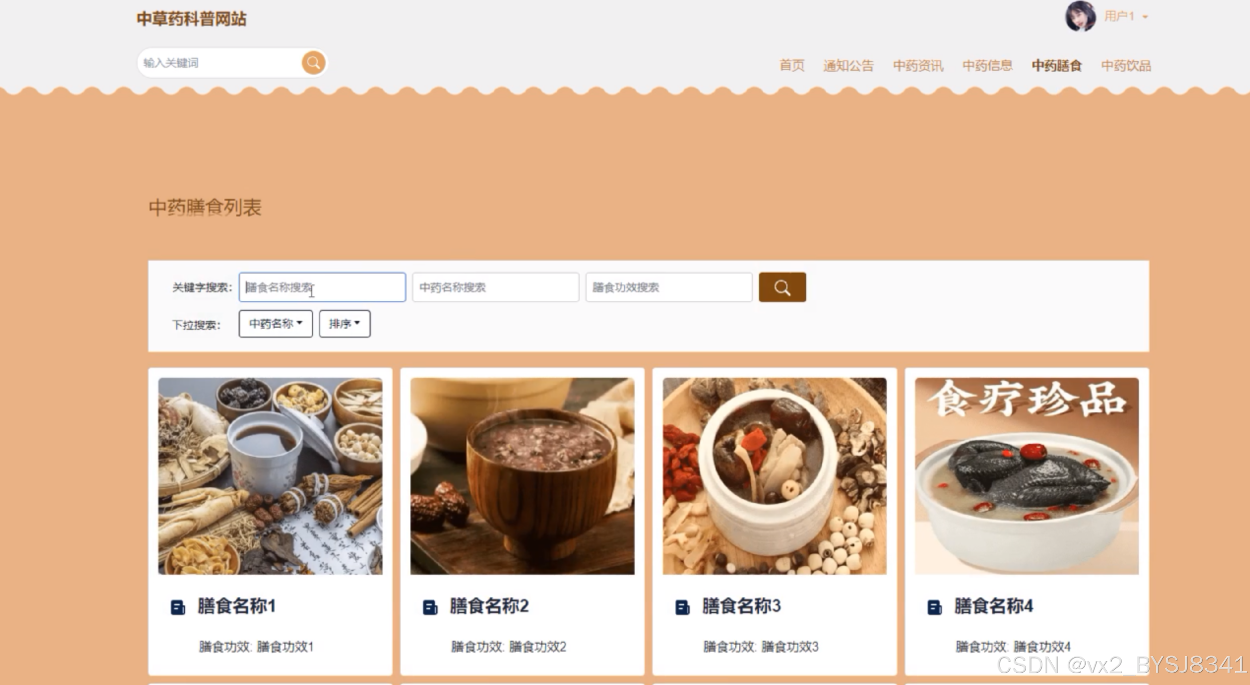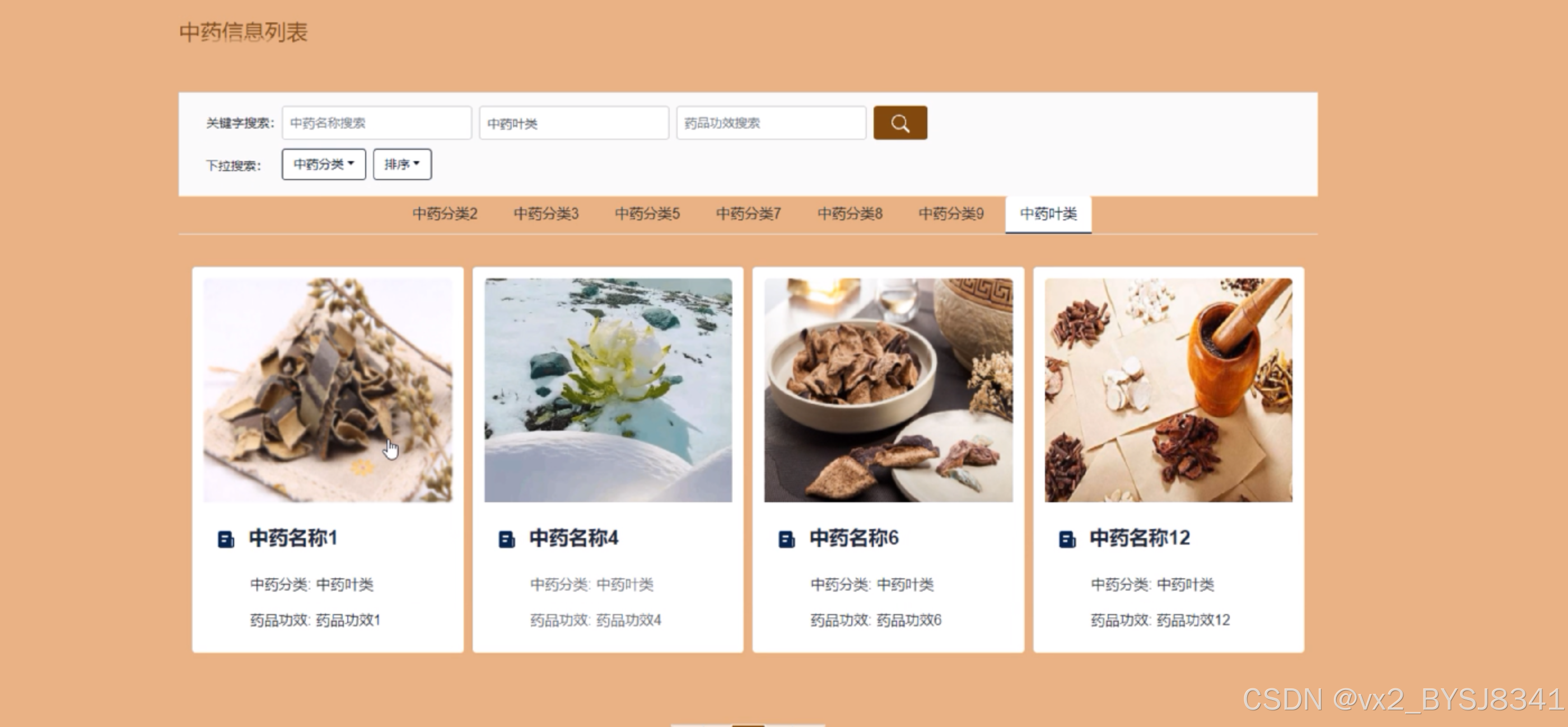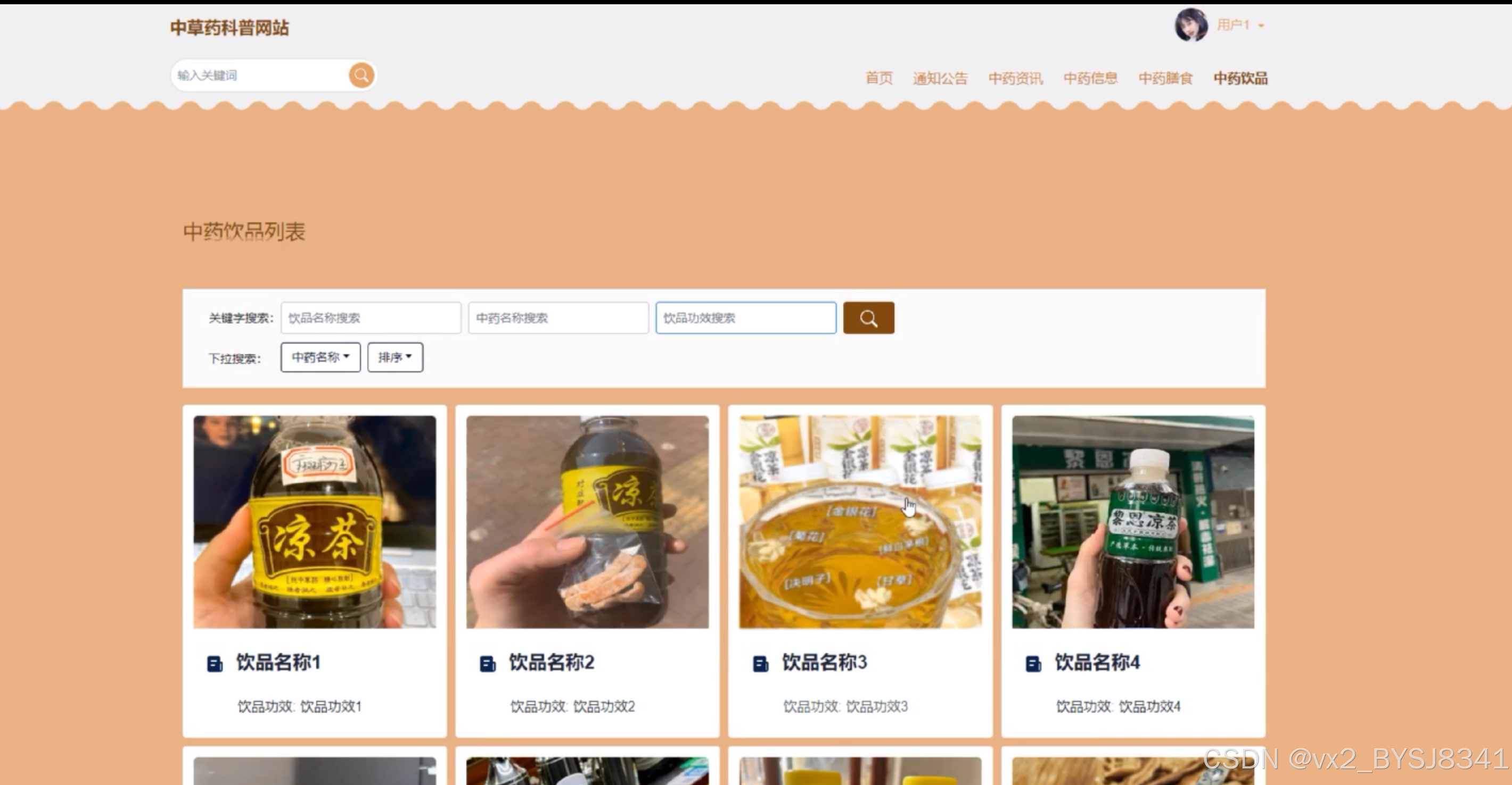 This project aims to develop a popular science website of Chinese herbal medicine based on SpringBoot framework, and improve the public's cognition and understanding of Chinese herbal medicine through modern information technology means. The platform not only provides rich knowledge resources of Chinese herbal medicine, but also combines multimedia display and interactive functions to enhance user experience. Ordinary users can log in to the system through registration, browse a variety of content including Chinese medicine information, Chinese medicine information, Chinese medicine meals and Chinese medicine drinks, and can like, favorite and comment on interested information. In addition, users will be able to manage their records and collections in a personal center for easy access later. The administrator has a strong background management system, which can add, delete, modify and check the contents of traditional Chinese medicine classification, medicinal parts, traditional Chinese medicine information, traditional Chinese medicine meals, traditional Chinese medicine drinks, etc., to ensure the accuracy and timeliness of the platform content. Through this comprehensive science popularization platform, we hope to not only increase the public's interest and understanding of Chinese herbal medicine, but also promote the inheritance and development of Chinese herbal medicine culture.