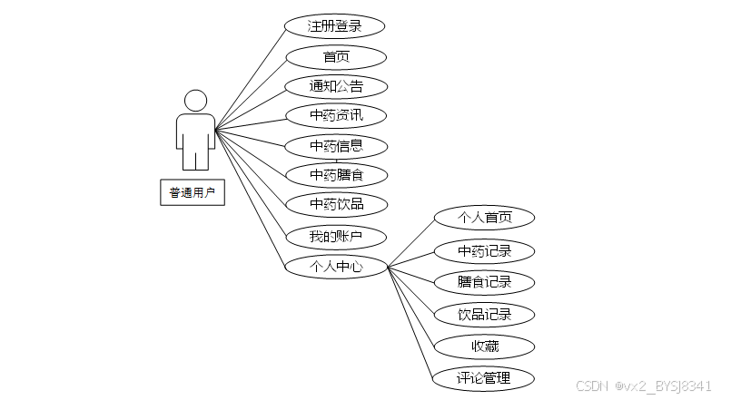 中草药科普网站中分为普通用户和管理员,其中用户的用例图如图2.2所示: