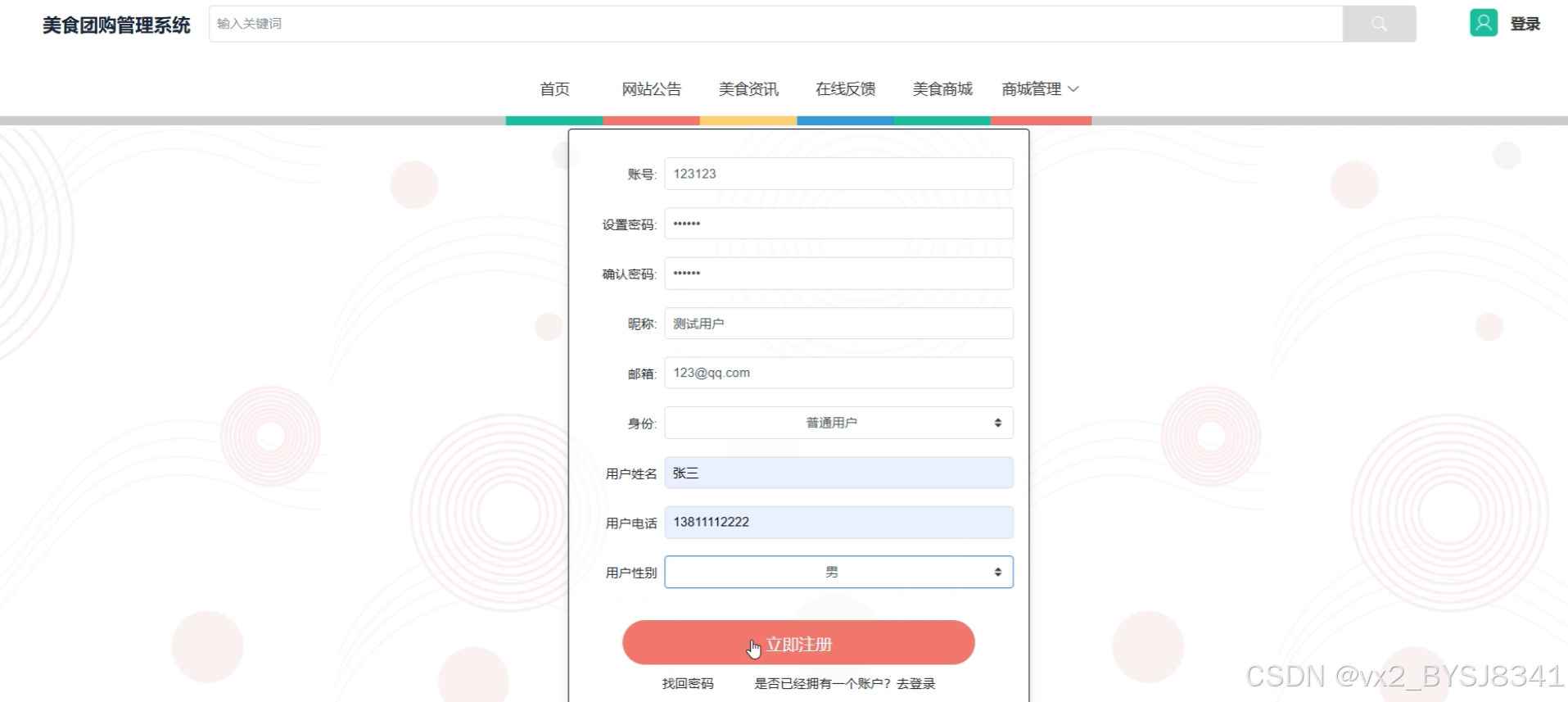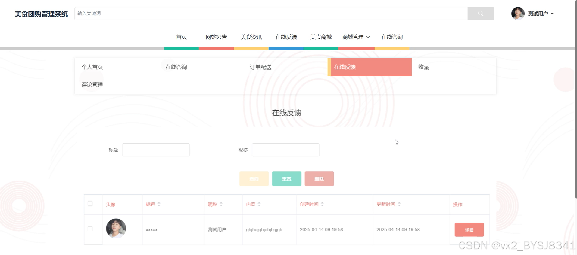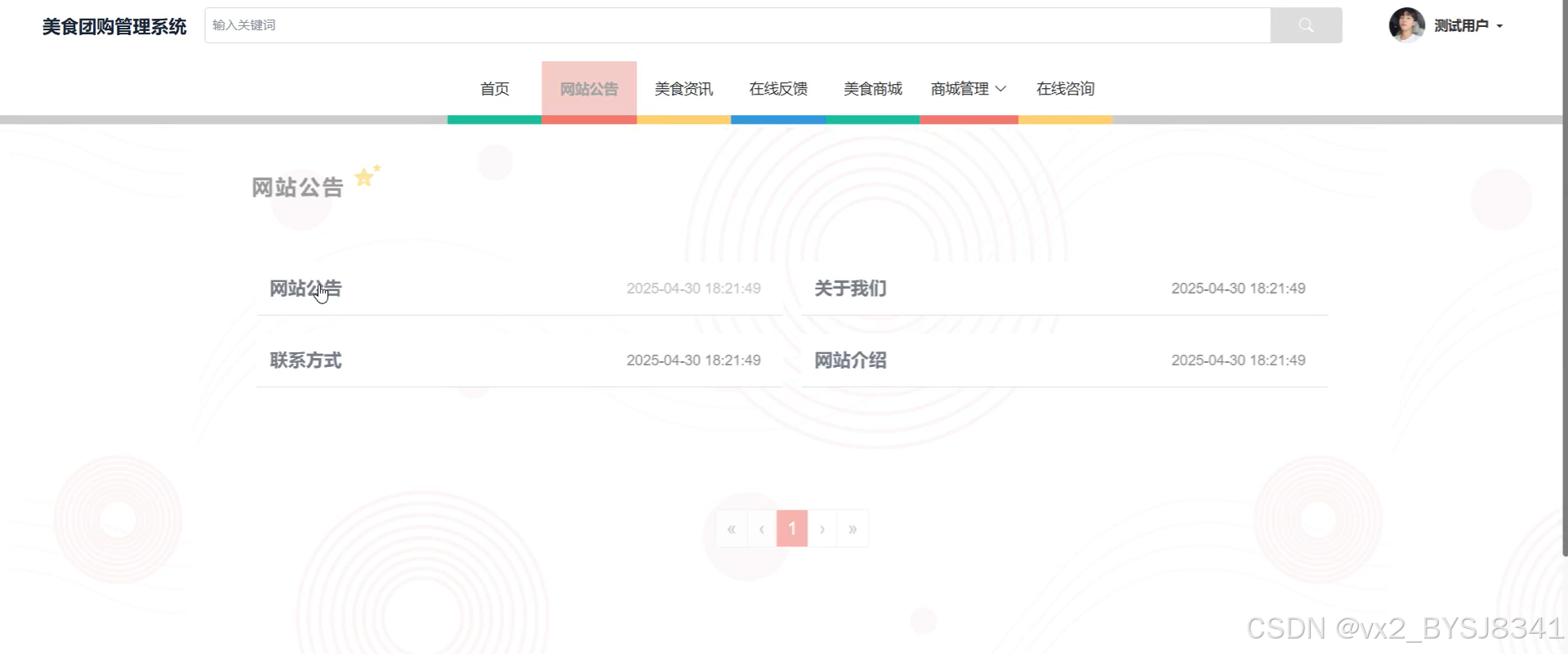 关键词:Spring Boot;美食团购管理系统;系统测试;
