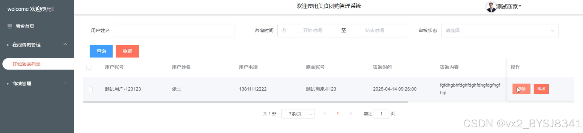 在线咨询管理:商家可以查看和回复用户发起的在线咨询,及时解决用户的问题,提高用户满意度。