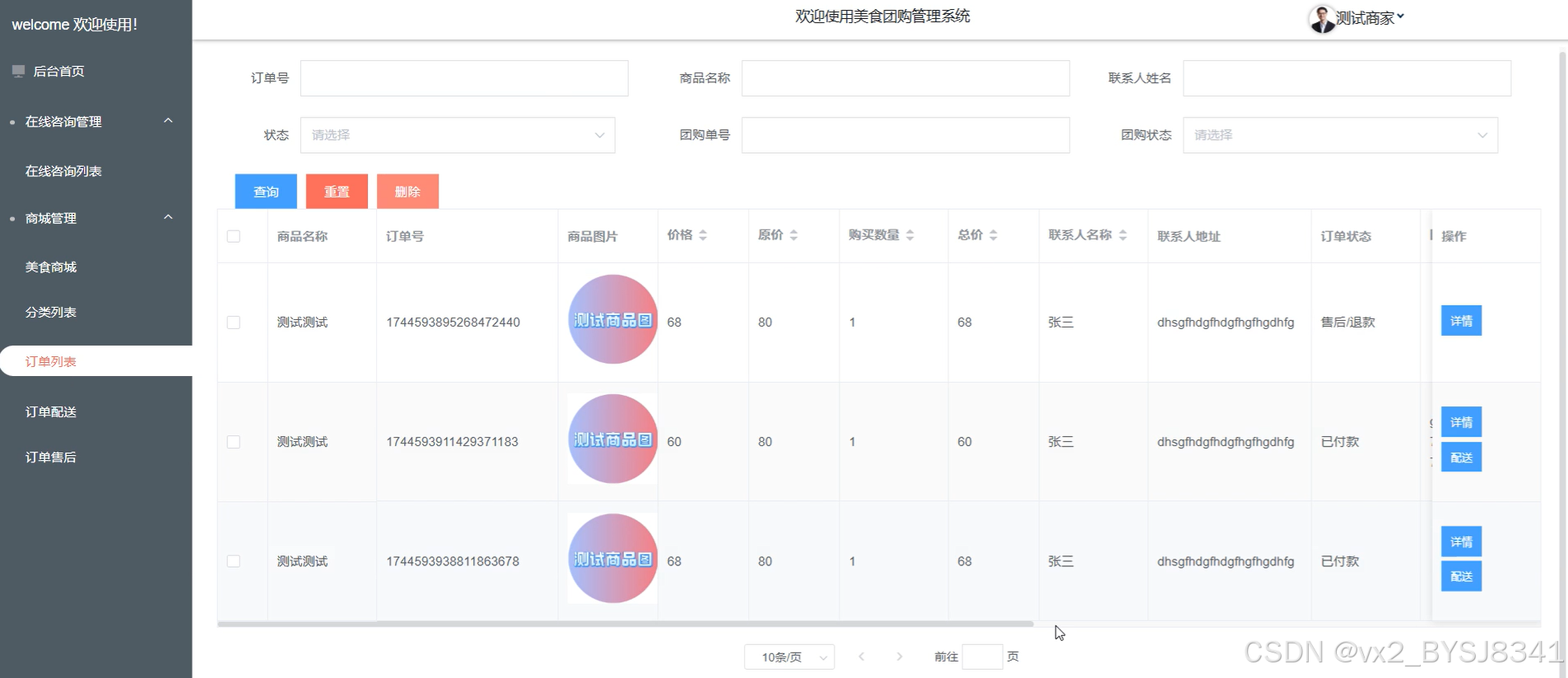 Keywords: Spring Boot;Food group buying management system; System testing;