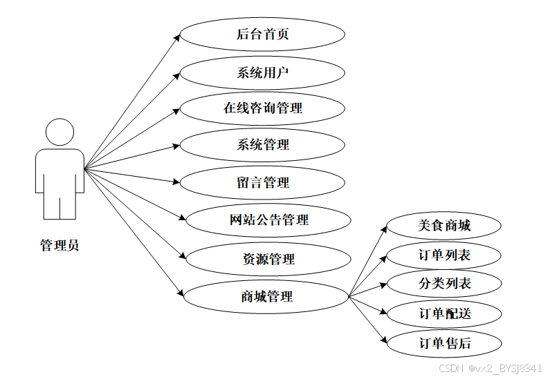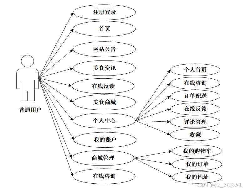 系统用户:管理平台的各类用户,包括普通用户、商家用户和管理员用户,进行用户的添加、删除、权限设置等操作。