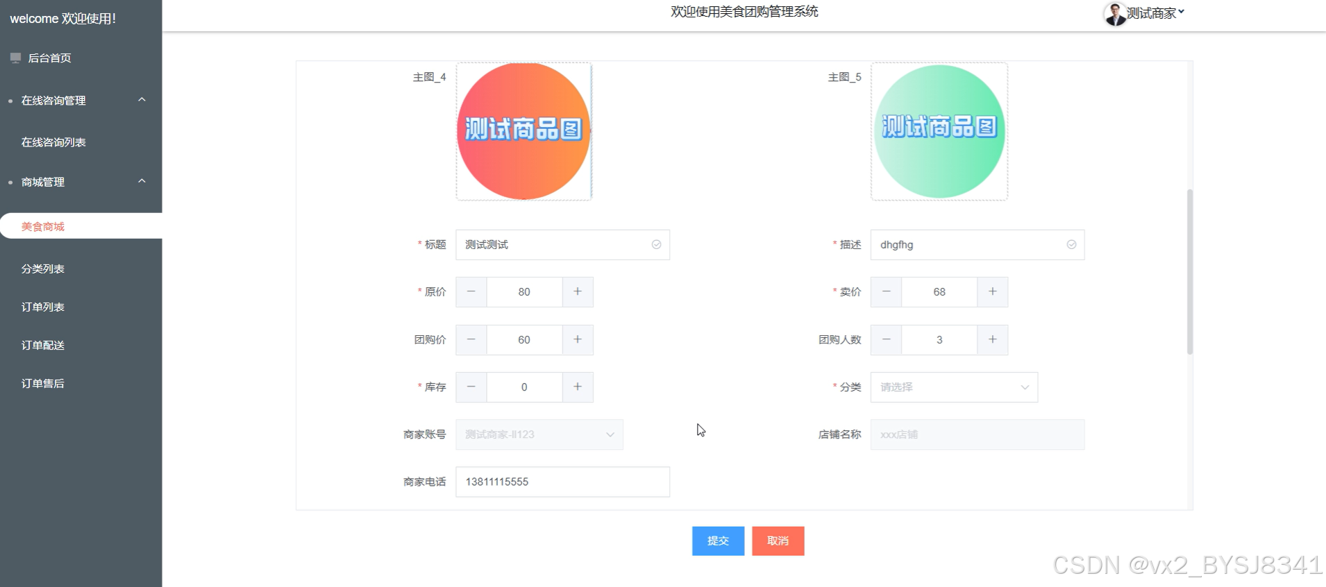 美食商城:管理商家自己的美食商品,包括商品的上架、下架、价格调整、库存更新等操作。
