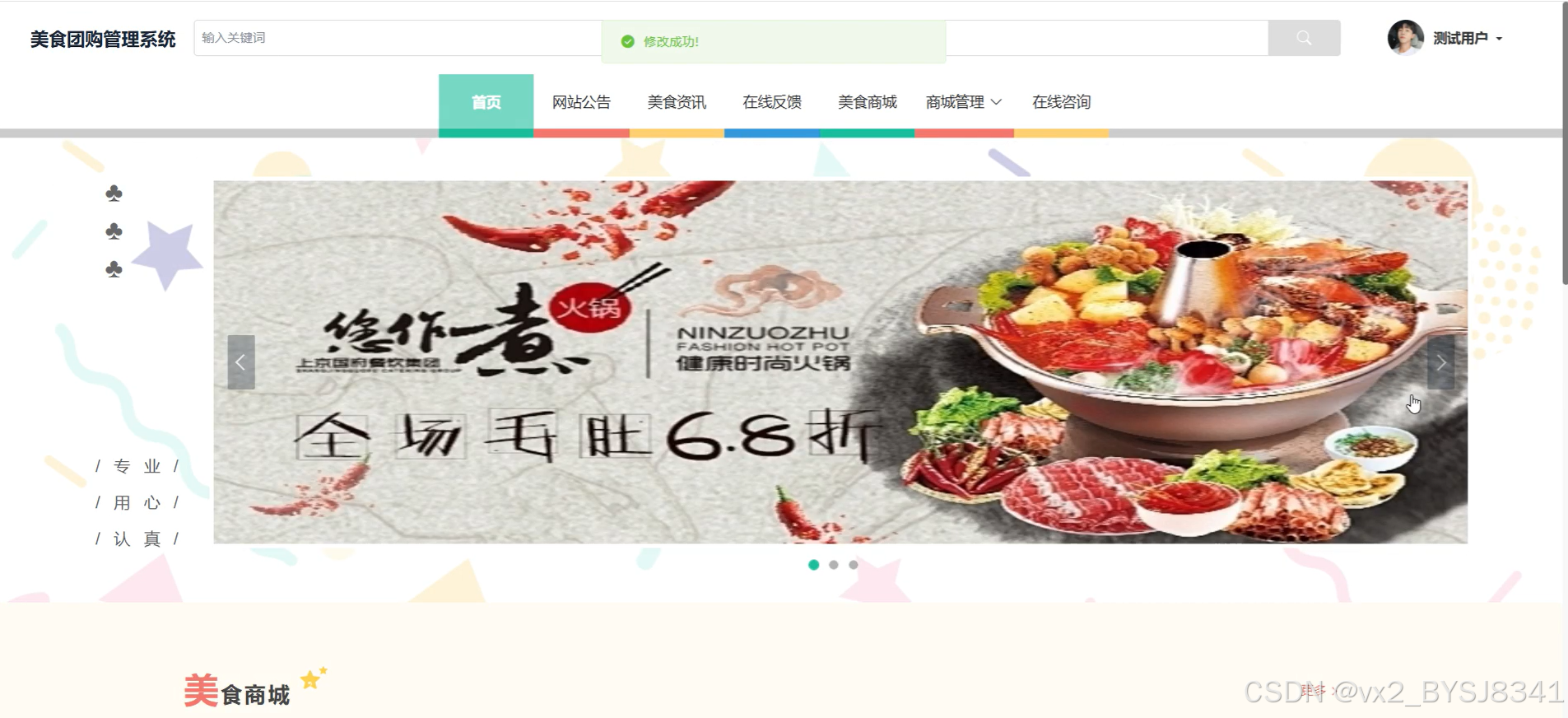 首页:展示平台的整体概览,包括热门美食推荐、最新优惠活动、特色商家等信息,为用户提供快速了解平台核心内容的入口。