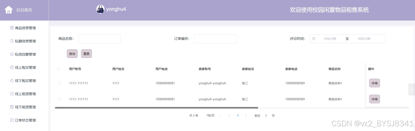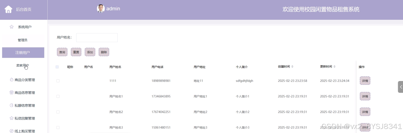 第五章:系统实现,主要介绍了基于SSM的校园闲置物品租售系统各个用户的功能、系统界面的实现。