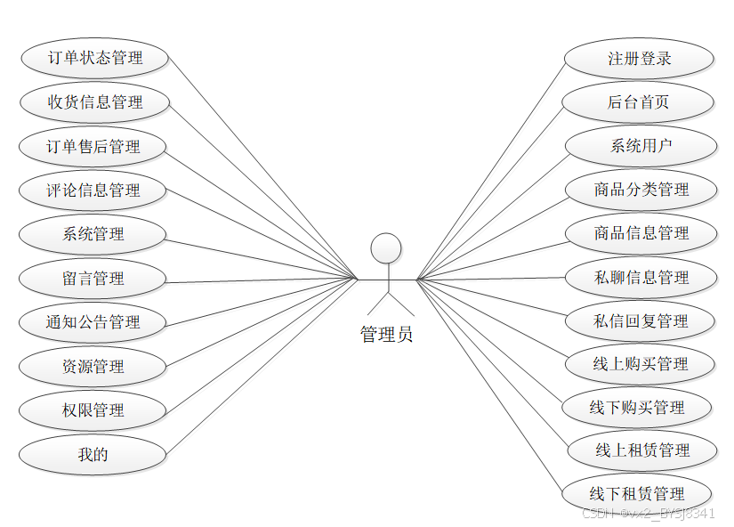 核心用户功能聚焦于简化用户的购物体验和卖家的商品管理流程。对于普通用户而言,系统提供了从注册登录到查看商品详情、进行线上或线下购买及租赁的一站式服务,并支持点赞、收藏、评分、评论等互动操作。此外,用户还能访问商城资讯、提交投诉反馈、管理个人信息等。卖家用户则享有更全面的商品信息管理和订单状态追踪功能,包括添加新商品、回复买家私信、管理订单售后等,所有操作均需经过管理员审核以确保安全性和合规性。管理员拥有最高权限,负责系统的整体维护,包括但不限于用户角色管理、商品分类和信息审核、处理投诉反馈、以及发布通知公告等,确保系统运行的稳定性和信息的安全性。
