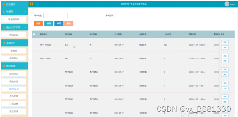 开通会员,在开通会员页面可以查看普通用户、用户姓名、用户性别、开卡日期、会员类型等内容等详细进行提交,如图5-3所示。